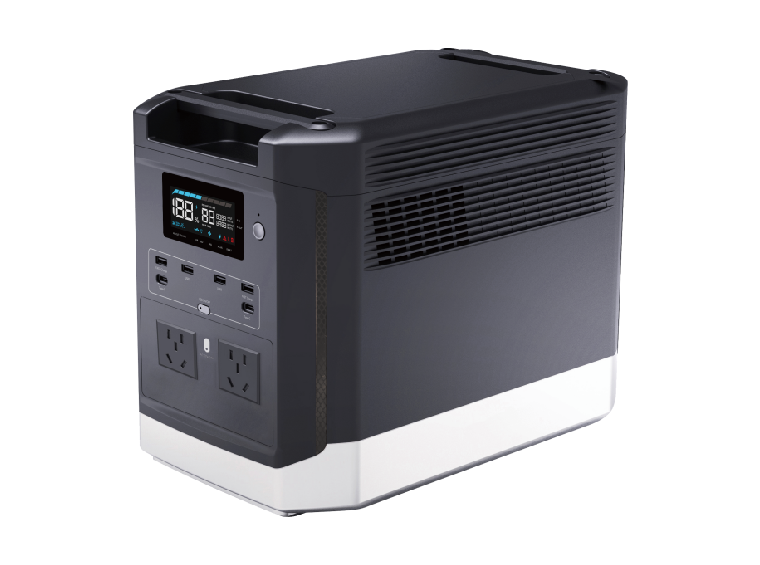 The AC output is 120V 50/60Hz, and the total output power is 1800W. This product supports solar charging, mains AC charging, UPS function, multifunctional LCD display, and Bluetooth APP function. It is an ideal energy storage power product.